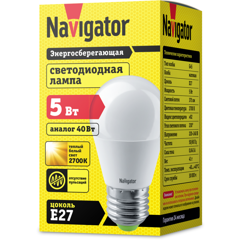 - NAVIGATOR Лампа светодиодная LED 5вт E27 теплая шар (94477 NLL-P-G45) (18859)