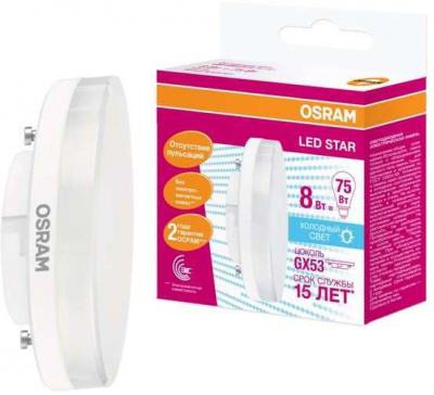 - OSRAM Лампа светодиодная LED 8Вт GX53 110° (замена 75Вт) белый OSRAM (4058075210950)