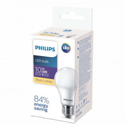 - PHILIPS Лампа светодиодная LEDBulb LED 10Вт E27 3000K 230VA60 RCA EcoHome (929001955307)