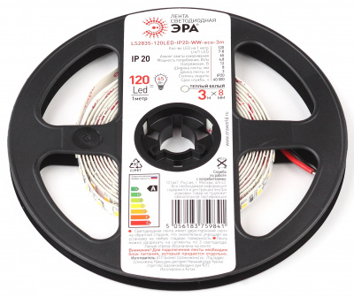 - ЭРА Лента светодиодная LS2835-120LED-IP20-WW-eco-3m (100/2100) (Б0035594)