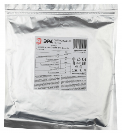 - ЭРА Светодиодная лента LS5050-14,4-60-12-2700K-IP65-2year-5m 12В (Б0044117)