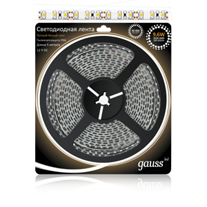 - GAUSS Лента светодиодная LED 2835/120-SMD 9.6W 12V DC теплый белый IP66 5м (311000110)