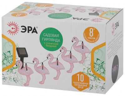 - ЭРА Садовая гирлянда 10 подсвечиваемых светодиодами фламинго.Общая длина от солнечной п ERADG012-07 ЭР (Б0038508)