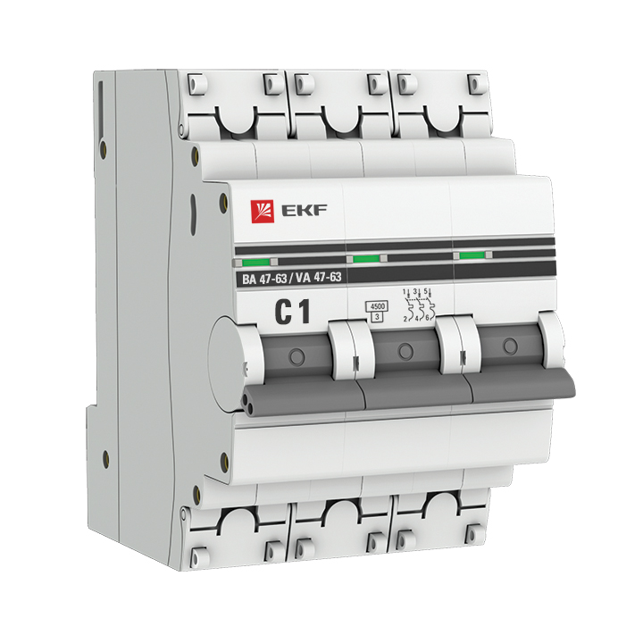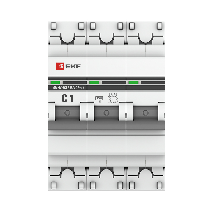 - EKF Выключатель автоматический трехполюсный 1А С ВА47-63 4.5кА PROxima (mcb4763-3-01C-pro)