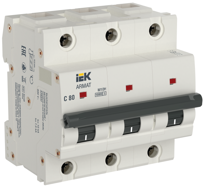 - IEK ARMAT Автоматический выключатель M10H 3P C 80А (AR-M10H-3-C080)