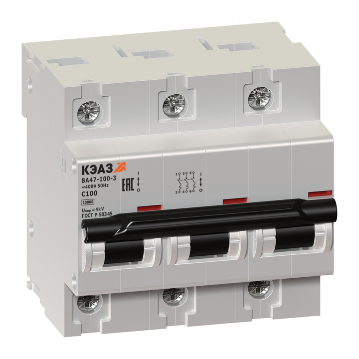 - KEAZ Выключатель автоматический трехполюсный ВА47-100-3С80-УХЛ3 (141629)