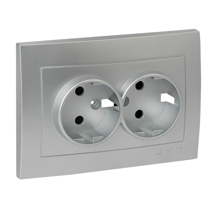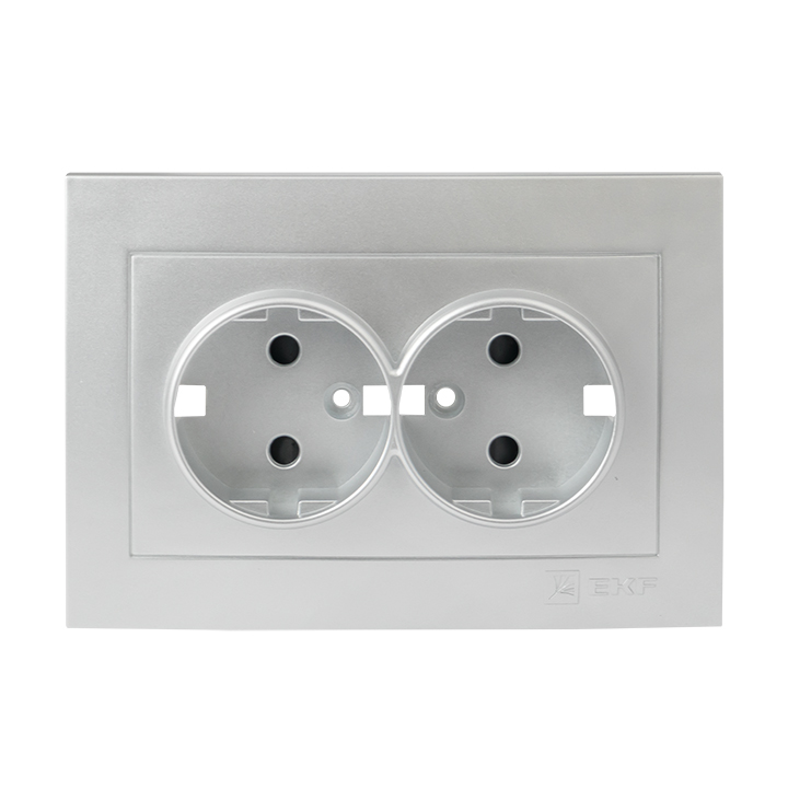 - EKF Валенсия лицевая панель розетки 2-местной с/з 16А сталь с защ. штор. EKF PROxima (ESR16-L-128-30)