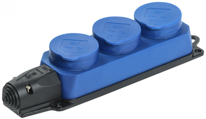 - IEK РБ33-1-0м Розетка трехместная ОМЕГА IP44 синяя (PKR61-016-2-K07)