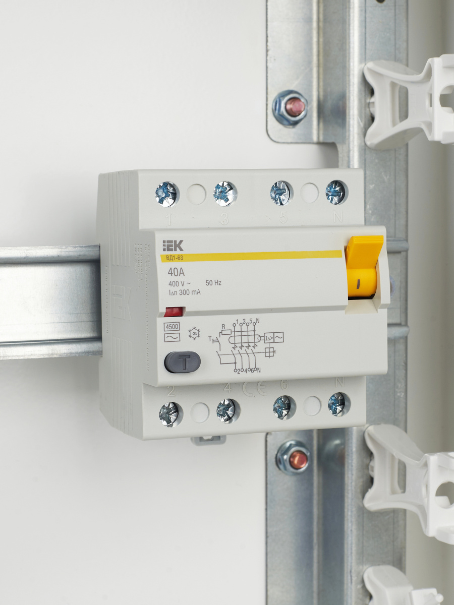 - IEK Выключатель дифференциального тока (УЗО) 4п 40А 300мА ВД1-63 AC (MDV10-4-040-300)