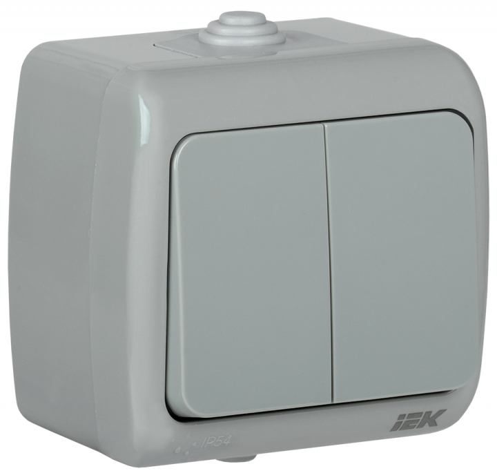 - IEK AQUATIC Выключатель 2 клавишный открытой установки10А IP54 ВС-20-2-0-A (EVA20-K03-10-54)