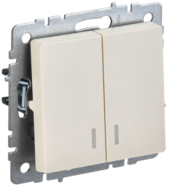 - BRITE Выключатель двухклавишный с индикацией 10А ВС10-2-1-БрКр бежевый (BR-V20-1-10-K10)