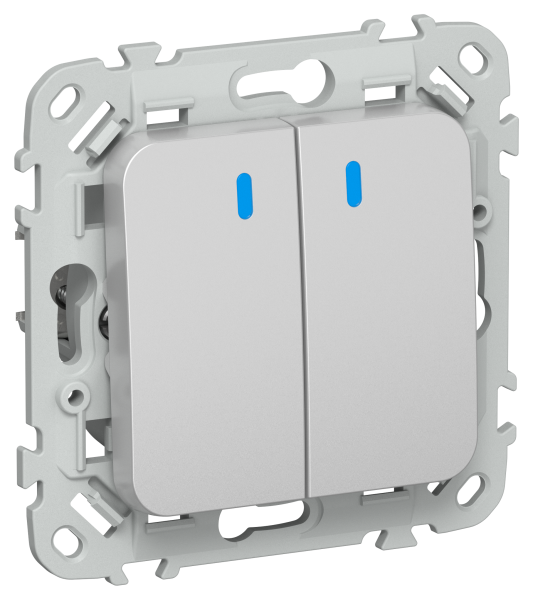 - FLITE Выключатель 2-клавишный проходной с индикацией 10А ВС62-1-1- алюминий (FI-V22-1-10-1-K47)