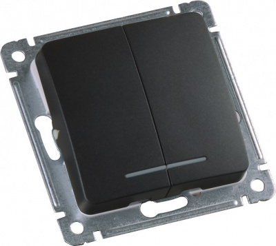- HEGEL MASTER Выключатель двухклавишный с индикацией, скрытой установки, в рамку, черный (ВС10-452-08)