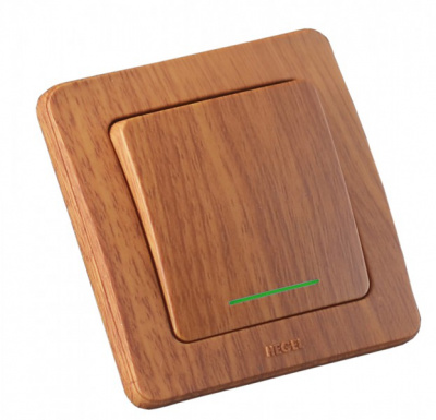 - HEGEL Выключатель одноклавишный скрытый с индикацией дуб 10А (ВС10-312-05)