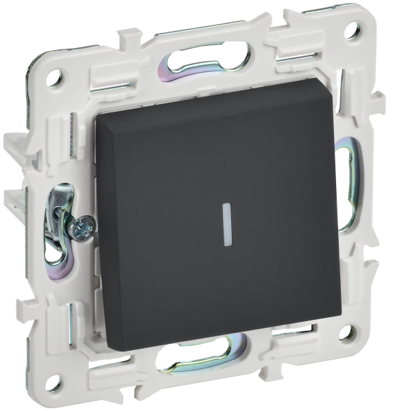 - IEK SKANDY Выключатель 1-клавишный с индикацией 10А SK-V07G графит (SK-V10-1-10-K53)