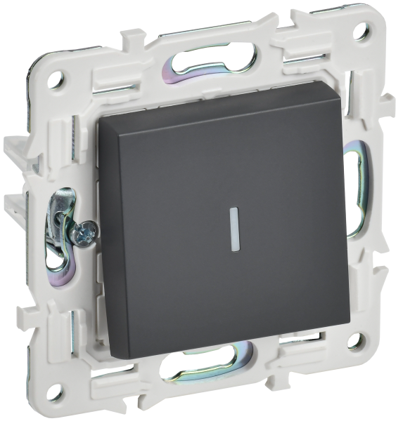 - IEK SKANDY Выключатель 1-клавишный проходной с индикацией 10А SK-V08T титан (SK-V12-1-10-K48)