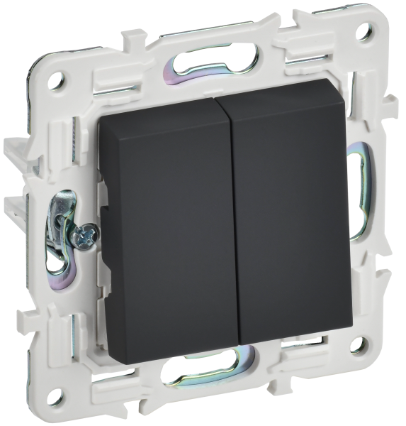 - IEK SKANDY Выключатель 2-клавишный проходной 10А SK-V05G графит (SK-V22-0-10-K53)