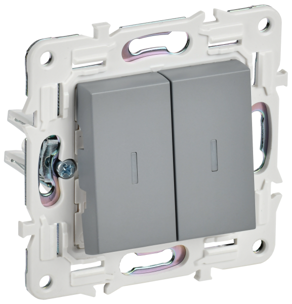 - IEK SKANDY Выключатель 2-клавишный с индикацией 10А SK-V09Gr серый (SK-V20-1-10-K03)