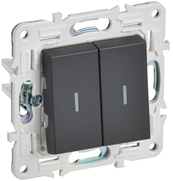 - IEK SKANDY Выключатель 2-клавишный с индикацией 10А SK-V09T титан (SK-V20-1-10-K48)