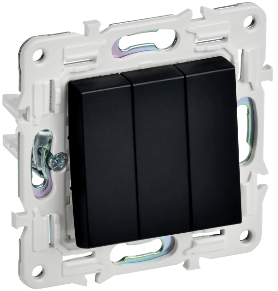 - IEK SKANDY Выключатель 3-клавишный 10А SK-V11Bl черный (SK-V30-0-10-K02)