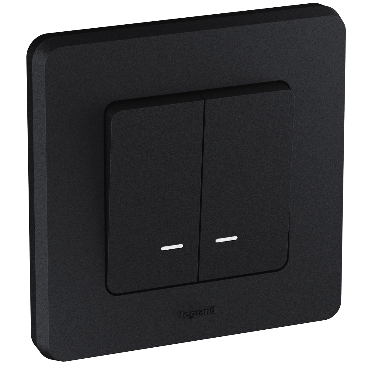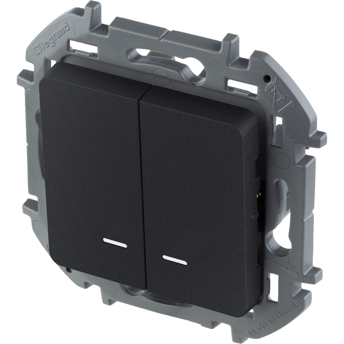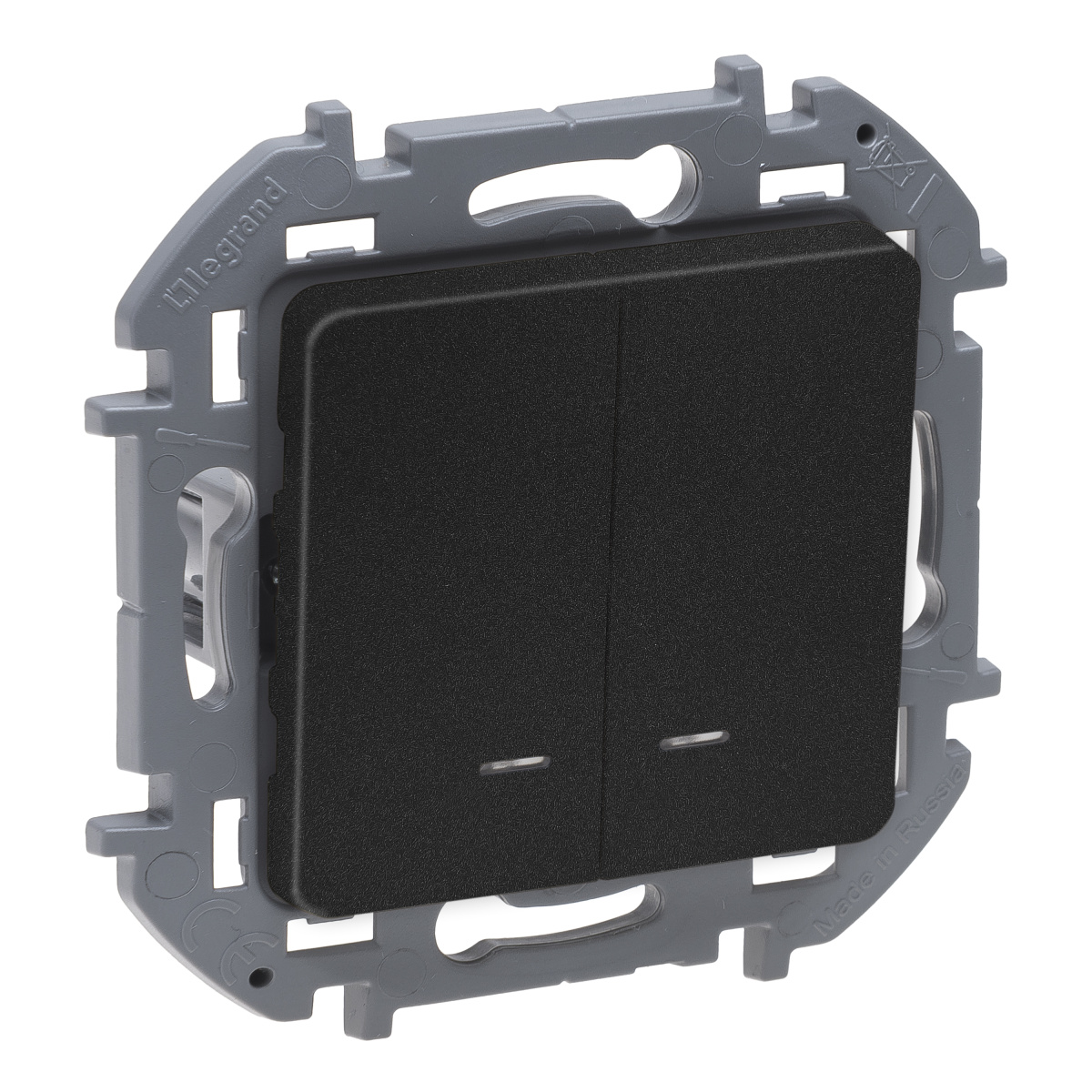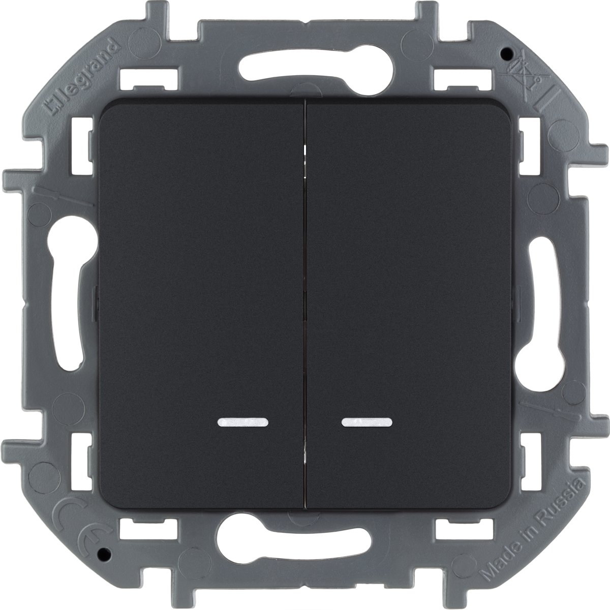 - LEGRAND INSPIRIA Выключатель двухклавишный с подсветкой/индикацией для скрытого монтажа, цвет "Антрацит", номинальный ток 10 А, напряжение ~250В (673633)