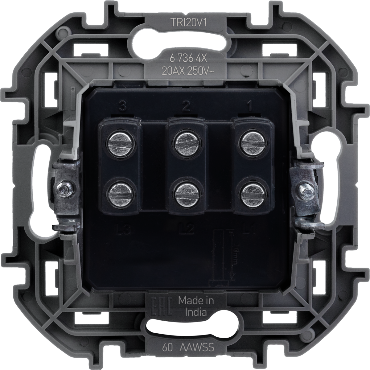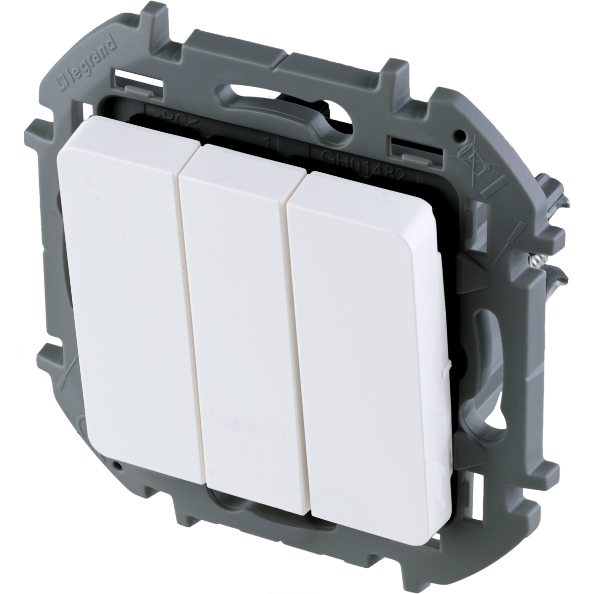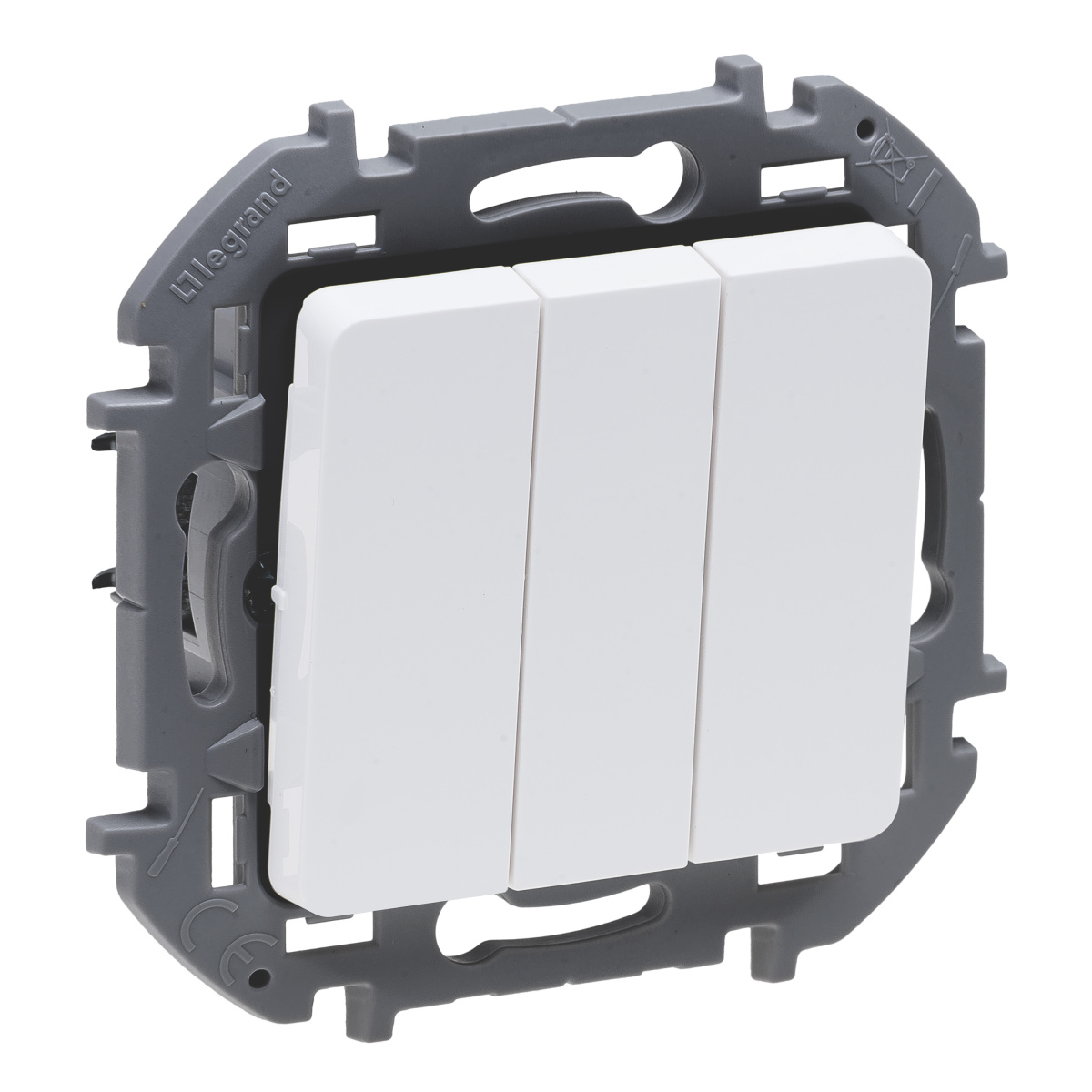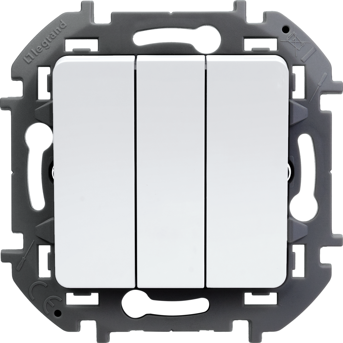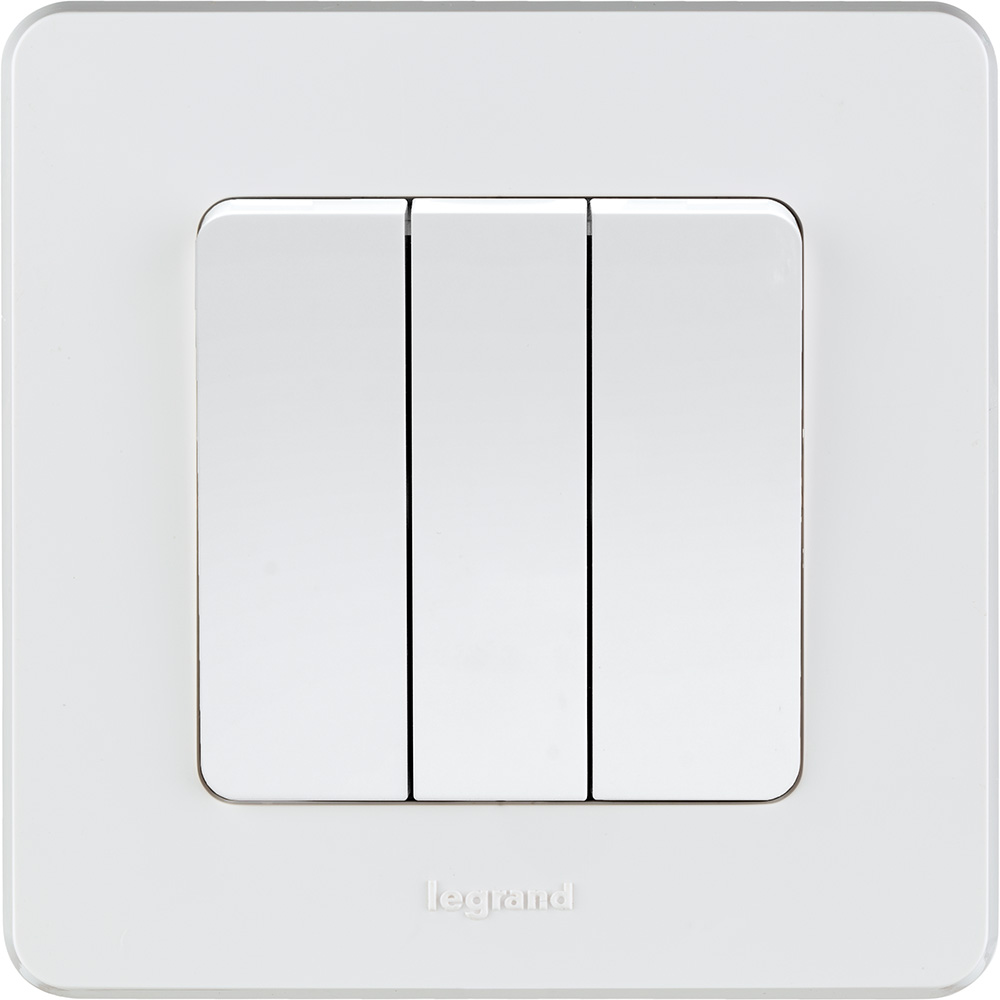 - LEGRAND INSPIRIA Выключатель трехклавишный для скрытого монтажа, цвет "Белый", увеличенный номинальный ток 20 А, напряжение ~250В. (673640)