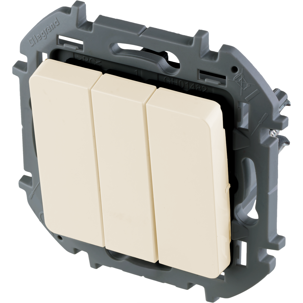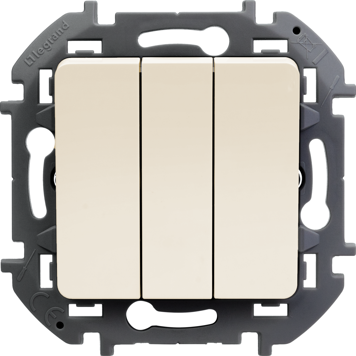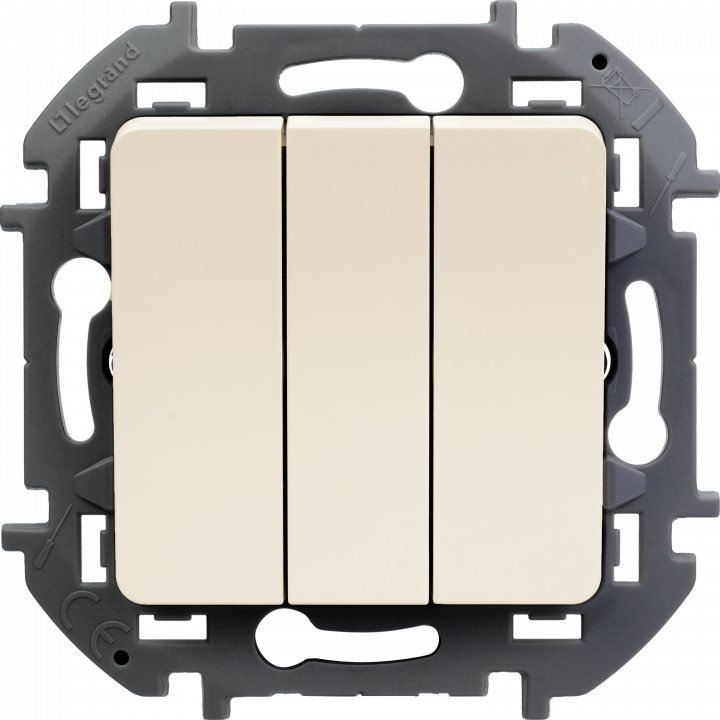 - LEGRAND INSPIRIA Выключатель трехклавишный для скрытого монтажа, цвет "Слоновая кость", увеличенный номинальный ток 20 А, напряжение ~250В. (673641)