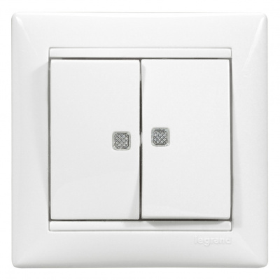 - LEGRAND VALENA Выключатель двухклавишный 10A с индикацией белый (774213 )