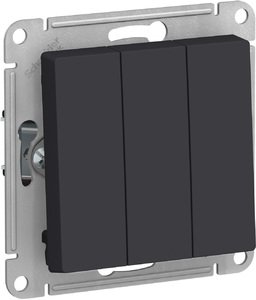 - SCHNEIDER ELECTRIC Выключатель трехклавишный ATLASDESIGN схема 1+1+1 10АХ механизм карбон (ATN001031)
