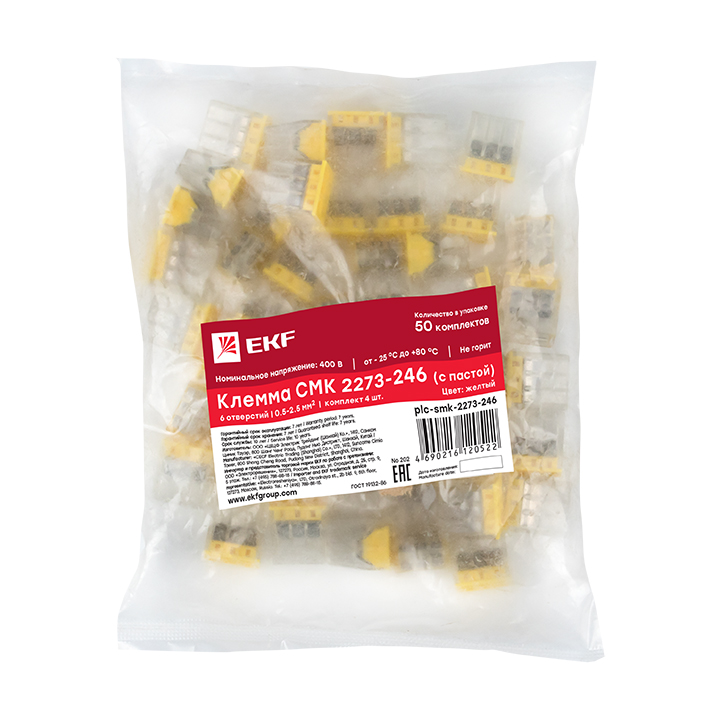 - EKF Клемма строительно-монтажная СМК 2273-246 PROxima с пастой 6 отверстий 0.5-2.5мм.кв. (50шт) (plc-smk-2273-246)